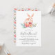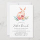 Cette élégante invitation au brunch de Pâques comprend un lapin aquarelle et des éléments floraux multicolores.