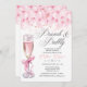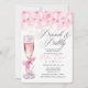 Brunch et Bubbly Vin Verre Champagne Pétales et Prosecco Floral Blush Rose Bridal Showback Invitation