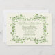 Une élégante invitation tout de blanc vêtue avec un cadre en lierre foncé.