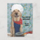 Un labo jaune dans un tablier, un bandana osseuse, et un casquette cuisinier avec un pot avec des pattes de poulet traînant. Vous pouvez l'utiliser pour une carte postale amusante ou une drôle d'invitation personnalisable à avoir des amis sur quand vous cuisinez dehors ou barbecue.