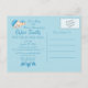 Invitation de carte postale pour baby shower sur le thème du bleu bébé doux, "C'est un garçon". Si vous avez besoin d'aide pour la mise en place ou la personnalisation, veuillez utiliser le lien "Contacter ce designer" sur le côté droit de cette page.