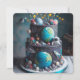 LE GÂTEAU À THÈME DE L'ESPACE AMUSANT SUR LE FRONT EST IDÉAL POUR L'INVITATION À LA FÊTE DE VOTRE ENFANT. MODIFIER UNE COPIE SUR LE DOS
