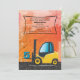Si votre petit type est fasciné en des véhicules de construction, il aimera cette invitation pour sa célébration d'anniversaire. Elle comporte un chariot élévateur jaune lumineux sur un fond grunge. La boîte de sentiment peut être agrandie ou être rendue plus petite pour adapter à votre taille de la police. Il est facile customiser la carte avec vos mots, police, couleur de police et choix de six types de papier.