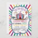 Une invitation colorée à la fête d'anniversaire de cirque, parfaite pour un moment de sport et de magie entre amis. Comprend des couleurs arc-en-ciel et le thème des animaux.