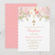 Invitation de communion rose et or floral