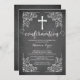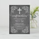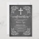 Notre belle invitation à la confirmation de tableau noir moderne comprend un cadre de défilement vintage, une croix blanche et une police de confirmation chic et fantaisie sur un arrière - plan populaire de tableau de craie noire. Retournez notre invitation de confirmation sur pour voir un retour correspondant pour une touche spéciale supplémentaire. Une invitation parfaite pour une confirmation pour les filles ou les garçons. Visitez notre boutique pour cette invitation dans une large sélection de couleurs modernes et tendance.