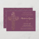 Cette invitation de confirmation moderne de 3,5 po x 5 po comporte une croix de style "feuille" en or complexe et le mot "confirmation" dans une police moderne. L'arrière - plan est de couleur violet ou prune, mais peut être customisé à n'importe quelle couleur de votre choix pour votre célébration et cérémonie religieuse spéciale.