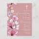 Cette élégante carte postale d'invitation à la confirmation florale rose rose et poussiéreuse peut être personnalisée avec vos informations en typographie chic avec votre monogramme au verso. Conçu par Thisisnotme©