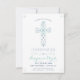 Cet invitation moderne de confirmation dispose d'une élégante croix florale bleue et verte dessinée. Idéal pour la célébration religieuse d'un garçon, il peut être customisé avec le nom de votre enfant et les détails de l'événement. La couleur arrière - plan peut également être changée à votre goût.