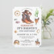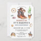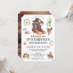 Une invitation "saddle up" mignonne et fantaisiste cow-boy sauvage 4e anniversaire en terre cuite, marron et blues pour un garçon, avec la ville occidentale, cowboy engrenage stagecoach, lasso, et cowboy à cheval. Tout ce dont un cowboy a besoin. C'est son premier rodéo ! Motif en bois de grange rustique foncé à l'arrière de l'invitation. Vous pouvez le customiser pour n'importe quel âge !