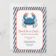 Une invitation à thème été avec un crabe bleu et un arrière - plan rayé bleu et blanc. (Vecteurs par Vecteezy). La carte est facile à customiser avec votre libellé, police, couleur de police et options de forme de papier. Pas exactement ce que vous cherchez ? Tous nos produits peuvent être conçus sur mesure pour répondre à vos besoins sans frais supplémentaires. Contactez-nous simplement à askcottonlamb@gmail.com. Coordonner les produits disponibles : Demandez-nous !"
