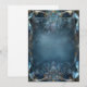 Un arrière-plan élégant et orné avec un cadre de carte bleu vide pour écrire dessus, entouré de motifs tourbillonnants et de dessins complexes dans des nuances de gris foncé et d'or clair, avec des touches subtiles d'énergie magique brillant subtilement dans le design. L'effet global est celui qui suggère le luxe ou la fantaisie.
