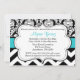Invitez vos invités à votre fête d'anniversaire de baby shower, de Fête de la mariée, ou à n'importe quel événement d'une manière d'amusement avec cette invitation bleue et noire à la mode de damassé et de chevron.