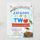 Invitation à l'anniversaire O-fish-al pour deux ans. Faites quelques brasses pour vous amuser avec cette invitation colorée à l'aquarelle pour le grand anniversaire du garçon de deux ans avec bateau en bois marron, étang et canne de pêche. Cette invitation fonctionnera parfaitement pour garçon fête d'anniversaire de pêche de deuxième anniversaire. Modifiez simplement ce modèle facile à utiliser dans le menu Personnaliser pour le rendre spécial.