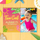 Design d'invitation dynamique et animé qui combine des éléments tropicaux avec des couleurs néons audacieuses. Il est parfait pour des événements tels que des parties de billard, des soirées luau, des fêtes d'anniversaire, ou toute occasion où vous voulez insuffler un sentiment d'amusement et d'excitation