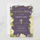 Cette jolie invitation à la confirmation moderne comporte une bordure florale illustrée et le mot "Confirmation" en or. L'arrière - plan est une couleur violet (prune), mais peut être customisé à n'importe quelle couleur que vous choisissiez. L'arrière de l'invitation comprend un motif en quatrefoil or avec un arrière - plan violet assorti qui peut également être échangé. Le texte est personnalisable pour votre événement religieux spécial.