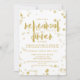 Invitation élégante de dîner de répétition dans le blanc et or avec des confettis.