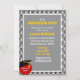 Célébrez la graduation de l'enseignant avec cette invitation noire et grise avec une pomme rouge portant une casquette de fin d'études. Ajoutez les détails de votre fête pour une invitation de type aimable pour le fier diplômé.