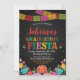 Ce design coloré présente des fleurs colorées et des bannières Papel Picado. Il est parfait pour une fête de fin d'études sur le thème de la fête.