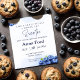 Préparez-vous à quelque chose de doux avec cette invitation de douche inspirée de la myrtille ! Avec un en-tête « La vie est sur le point de devenir beaucoup plus douce » associé à des polices chic et classiques sur un fond d'aquarelle bleue entouré de grappes de myrtilles. Parfait pour une douce célébration !
