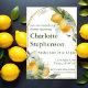 Cette invitation au citron est la meilleure de la crème, avec une couronne de verdure au citron sur un cadre doré rustique qui est parfait pour votre prochaine douche de mariée, douche de mariage ou douche de bébé ! Une combinaison de texte vert de type vintage et moderne donne à cette invitation un look unique et intemporel qui aidera à préparer le terrain pour votre prochain événement !