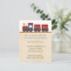 Invitation de baby shower avec une illustration adorable du train de jaune, rouge et bleu sur des voies de train de célébrer l'arrivée de votre bébé. Facilement personnaliser avec vos détails de partie. Conçu par griffonnage rouillé.