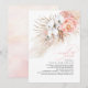 Cartes d'invitation de douche de couples à l'aquarelle élégante avec des orchidées blanches, des roses roses, de la verdure tropicale séchée et de l'herbe de pampas