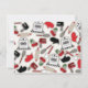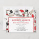 Une invitation de douche de cuisine comportant une conception orientée de cuisine se composant des mélangeurs de main, gants de four, cuillère en bois, goupilles, spatule, bat, les cerises, et le rétro fourneau. La conception a un modèle de couleurs rouge et noir. Personnalisez le texte sur l'avant et le dos.