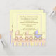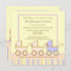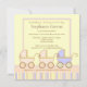 Trois fois l'amusement ! C'est le faire-part à cette invitation de baby shower que les voitures d'enfant roses de caractéristiques et bleues adorables avec rose, bleu, jaunissent, et bronzent des rayures sur un arrière - plan jaune.