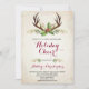 Deer antler Noël Invitation Modèle qui peut être édité en ligne. TAPEZ DANS VOTRE PROPRE TEXTE dans cette invitation de fête de Noël et voyez-le tout de suite. Ce design d'invitation présente des bois chères festifs avec un design de laurier et de baies sur un arrière - plan vintage coloré à l'eau. C'est l'invitation parfaite pour votre fête de vacances, douche nuptiale d'hiver, baby shower, fête de Noël ou tout ce que vous voulez.