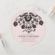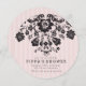 Invitation florale chic parisienne moderne avec fond rayé doux. Caractéristiques florales en filigrane noir avec typographie simple.