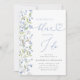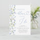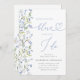 Célébrez la future mariée avec cette élégante invitation à la douche nuptiale "Quelque chose de bleu avant moi". Dotée d'une délicate aquarelle de fleur sauvage dans les tons bleu doux, cette invitation dégage charme et sophistication. Un arc bleu foncé et une typographie de script gracieuse apportent une touche romantique, ce qui en fait le choix idéal pour une fête de jardin, une soirée de printemps ou une douche de mariée à thème floral bleu.