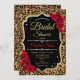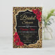Invitation à la douche nuptiale. Elégant design noir rouge avec parties scintillant en or et poster de animal léopard. Caractéristiques roses rouges et police de script tendance. Parfait pour une Fête des mariées design.