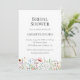 Célébrez la future mariée avec cette magnifique invitation à la douche nuptiale Fleur sauvage Watercolor! L'élégant arrière - plan blanc est joliment décoré avec une police boho élégante qui ajoute une touche de fantaisie au design. L'étonnante prairie fleur sauvage colorée au bas de l'invitation crée un beau contraste avec la partie supérieure simple, mais chic. Cette invitation est parfaite pour toute mariée qui aime le style bohème et veut célébrer ses noces à venir avec une douche nuptiale amusante et festive. Envoyez cette invitation à toutes les femmes importantes de la vie de la mariée et préparez-vous à une fête mémorable !