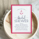 Les invitations modernes à la douche nuptiale sont dotées d'un lettrage bleu marine classique avec une illustration d'ancre nautique et une bordure contrastée en rose fuchsia vif et éclatante. La palette de couleurs rose et marine est parfaite pour les douches nuptiales d'été ou nautiques.