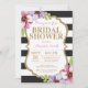 Invitation à la douche nuptiale rose noir et or. Aquarelle fleur fleurie violette et rose. Parties scintillant or. Blancs et Noirs. Pour plus de personnalisation, cliquez sur le bouton "Customiser" et utilisez notre outil de conception pour modifier ce modèle.
