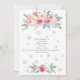 Une belle et élégante invitation de douche personnalisable sur le thème des perles et du prosecco, avec des lettres en faux or rose, des perles et des roses.