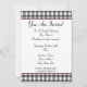 Une invitation simple avec un design à carreaux gris charbon en haut et en bas de la face avant. Garniture rose et ruban noir, police en gras. Personnalisez avec les détails de votre occasion. Le côté opposé présente un design uni avec une forme de cercle au milieu, encadrant le texte.