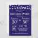 Invitation conjointe d'un adulte à la fête d'anniversaire. Coanniversaire de la fête combinée. Arrière - plan bleu marine. Homme ou femme, garçon ou fille Anniversaire Invitation. Éclairage à cordes. 13ème 15ème 16ème 18ème 20ème 21ème 30ème 40ème 50ème 60ème 70ème 80ème 90ème 100ème, n'importe quel âge. Pour plus de personnalisation, cliquez sur le bouton "Customiser" et utilisez notre outil de conception pour modifier ce modèle.