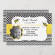 Cette conception a le pois et les copies noirs et blancs de chevron. Il y a deux abeilles de bulle volant autour de l'invitation avec un endroit de mettre la photo de votre enfant.