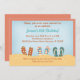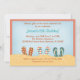 Invitation d'amusement grande pour une partie de thème de plage. Idéal pour une réception au bord de la piscine ou une partie d'été. Caractéristiques trois paires de bascules électroniques dans différentes couleurs et motifs sur le sable avec un arrière - plan bleu texturisé. La palette de couleurs a un talent vintage. Observez contagieux et élégant, approprié pour n'importe quel âge. Ajoutez vos propres mots.