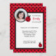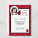 Invitation mignonne de photo d'anniversaire avec un arrière - plan noir et rouge de point de polka, et deux ou trois petites coccinelles. Présentez la photo de votre enfant dans l'espace fourni.