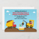 Invitation de fête d'anniversaire de construction. Cette invitation comporte un camion à benne basculante dans la boue, un véhicule de construction construisant un gâteau d'anniversaire et peut être personnalisée avec une photo de votre enfant. © BabyStarDesign de quelques éléments