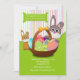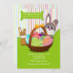 Si vous avez une chasse à oeufs, une célébration d'anniversaire, ou le brunch de Pâques cette invitation adorable est parfait pour l'occasion. L'arrière - plan a un motif d'en pastel-rayure appareillé avec une base ressort-verte qui juge un panier de Pâques plein des oeufs décorés et de deux lapins. Le rouleau sur le dessus peut être rendu plus grand ou plus petit (+-) ou éliminé.