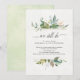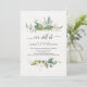 Des fleurs délicates et de la verdure offrent un joli fond pour votre invitation de fête d'anniversaire de mariage. Les fleurs à l'aquarelle rose pêche, jaune doux et vert sauge sur fond blanc solide contrastent joliment avec les aquarelles vertes au verso. Sur le devant, l'or (faux paillettons) entre les fleurs et le texte apporte une touche d'élégance.
