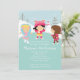 Commencez-vous fête d'anniversaire de patinage de glace outre de la droite avec nos petits patineurs de glace mignons patinant sur la glace avec un arrière - plan de neige avec un bonhomme de neige et des arbres. Facile à personnaliser avec votre information de partie. Visitez notre magasin chez www.celebrateitinvites.com pour d'autres variations de notre invitation de fête d'anniversaire de fille de patineur de glace. conceptions de ©Zenware