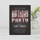 La partie aiment un rockstar. Le petit pain frais de la roche n a inspiré l'invitation faite sur commande d'anniversaire. Gris-foncé avec les frontières noires et rouges. Graphique de métaux lourds de style de headbanger classique des mots "fête d'anniversaire."