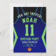 Célébrez votre journée spéciale avec cette Invitation anniversaire de Basketball Jersey, conçue pour les vrais fans de basket ! Doté d'un design jersey audacieux inspiré des couleurs emblématiques violet et or, cet invitation est parfait pour les enfants, les ados et les adultes qui aiment le jeu. Personnalisez-le facilement avec votre nom, âge, détails de la fête et même le numéro d'équipe en quelques clics seulement. Disponible en plusieurs tailles, imprimé sur papier de qualité supérieure avec une large gamme de finitions pour correspondre à votre style. Choisissez parmi différents types de papier, l'impression rapide et l'expédition rapide afin que vos invitations arrivent à temps. Que ce soit pour une fête sportive ou une fête de fans de Lakers, cet invitation est le moyen idéal pour exciter vos invités.