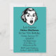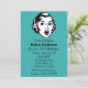Invitation de fête d'anniversaire de surprise d'amusement faite dans la sarcelle d'hiver, avec de rétros graphiques de bande dessinée de style d'une femme étonnée, au dessus. Le texte dans le noir est prêt à personnaliser pour votre fête.