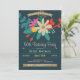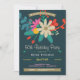 Invitation florale vibrante à la fête d'anniversaire. L'Invitation présente des fleurs lumineuses et un motif de feuilles sur le dos.